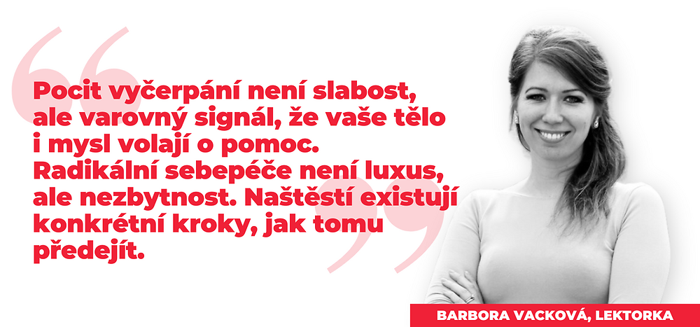 Na webináři se dozvíte, jak dát své mentální zdraví a energii na první místo bez pocitu viny a s vědomím, že tím prospíváte sobě i svému okolí. Naučíte se rozpoznávat své limity, obnovovat síly a vytvářet návyky, které vás budou dlouhodobě podporovat. Radikální sebepéče se stane vaším základem pro klidnější, vyrovnanější a smysluplnější život.
