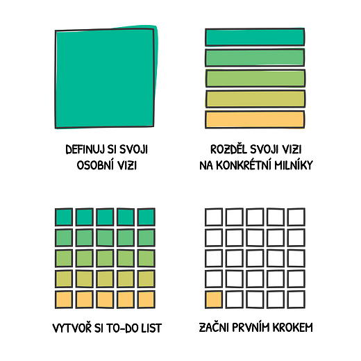 - A jaké konkrétní kroky podniknout, abyste svou osobní vizi opravdu proměnili v realitu?
