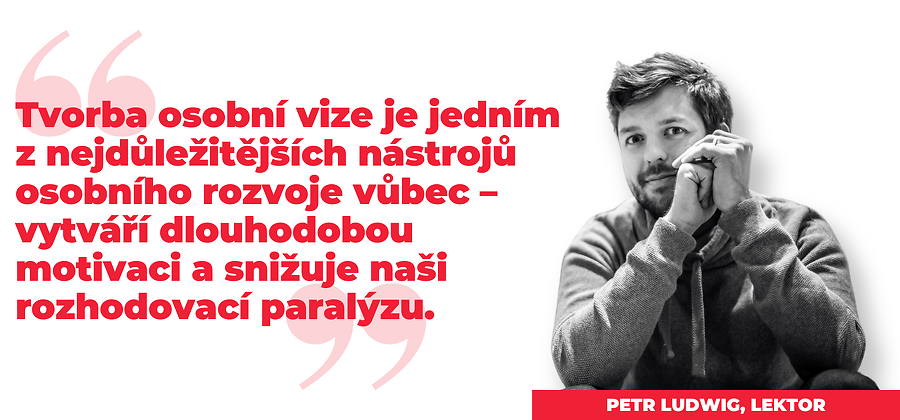 Pokud jste se poznali, dorazte na webinář s Petrem Ludwigem, autorem bestselleru Konec prokrastinace, a naučte se krok za krokem formulovat vaši osobní vizi. Osobní vize je vůbec ten nejdůležitější praktický nástroj osobního rozvoje – dává našemu životu směr, vytváří vnitřní motivaci a pomáhá nám najít odvahu ke změně.